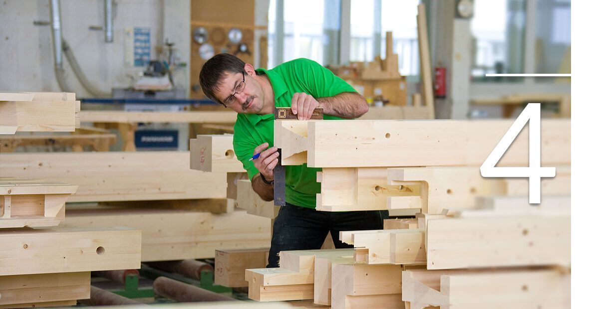 Upon completion of step 3 HUF HAUS produce working and construction drawings, and order all necessary materials, for the production of your home to begin. Each component for your post-and-beam home is manufactured in our quality-controlled production facilities in Hartenfels. Following a final quality inspection, all components are loaded and ready for transportation.