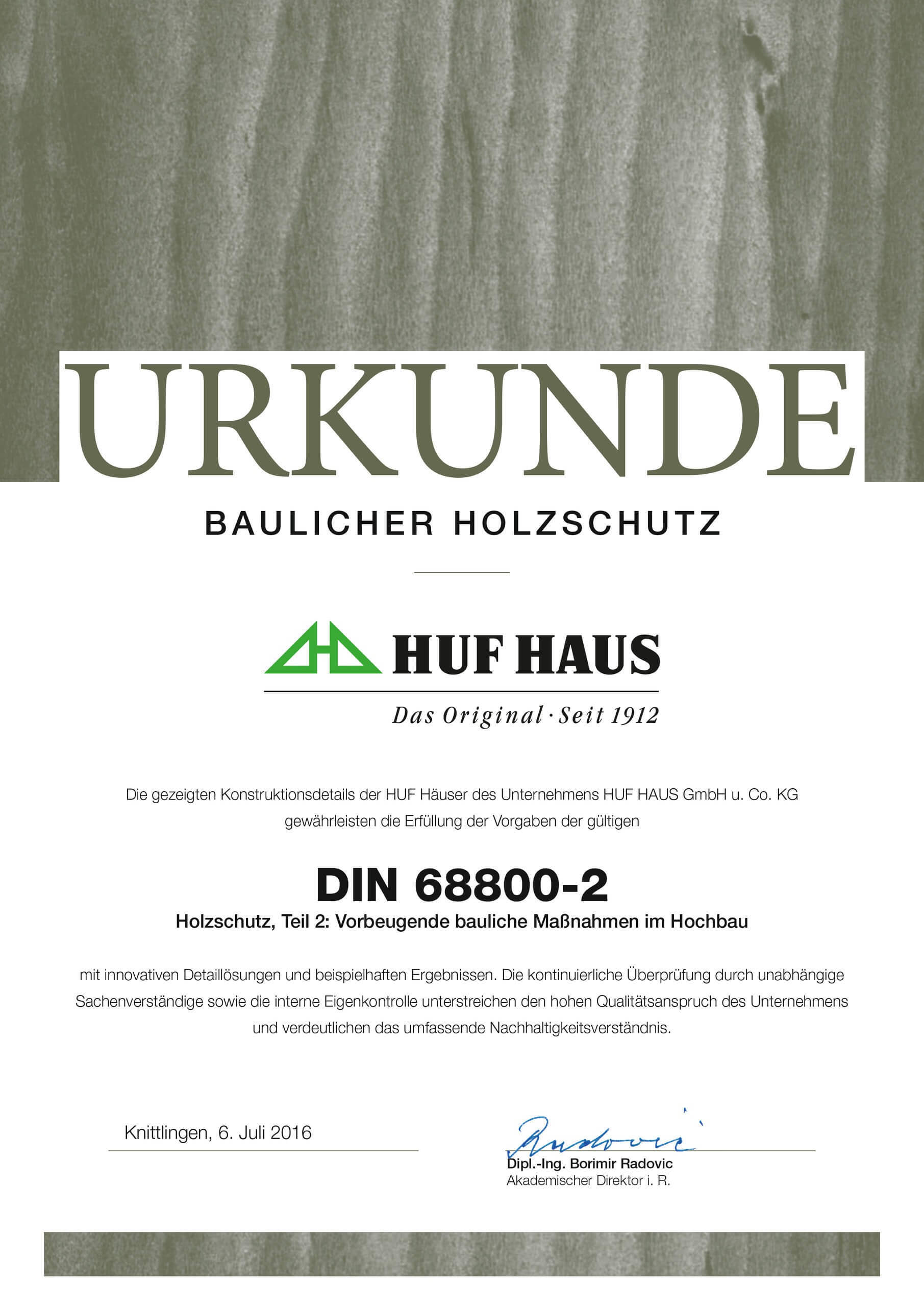 - Gold certification for all HUF Houses of the German Sustainable Building Council 2016