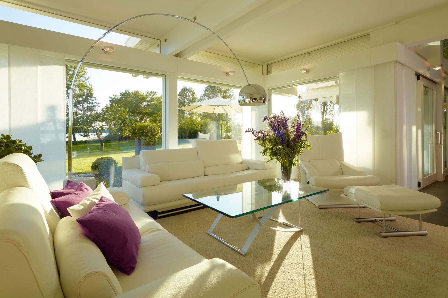 In addition to their aesthetical appeal, the HUF HAUS triple glazed panels absorb comfortable heat from the sun and maintain excellent heat insulation. It is not only residents of Family Homes who can benefit from healthy HUF architecture. Offices flooded with natural light and inspiring views are ideal for employee motivation, commitment and performance. As well as reproducing colours better, natural light also helps employees stay alert and attentive in the workplace.