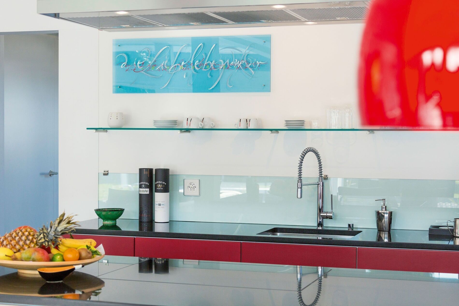 Der Drang nach lichtdurchfluteten Räumen und der direkte Kontakt zur Natur liessen sich perfekt in der Bauweise von HUF HAUS vereinen. Der Garten mit Naturpool und Palmen in perfekter Symbiose mit der weißen Grundfarbe des Hauses verleihen dem Projekt eine mediterrane Aura. Die Nähe zur Natur lassen sich nicht ausschließlich im Garten spüren, sondern auch auf der grossflächigen Dachterrasse mit gemütlicher Aussenlounge.