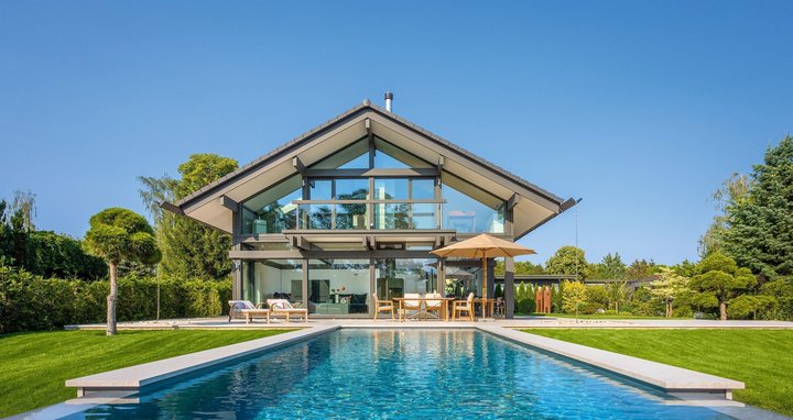 Auch Flachdachhäuser erfreuen sich weiterhin großer Beliebtheit, da sie besonders modern wirken. Bei HUF HAUS wurde bereits 1958 das erste Projekt mit Flachdach realisiert. Heute können Flachdächer vielfältig genutzt oder gestaltet werden, beispielsweise als Dachterrasse, mit Begrünung oder Bekiesung.