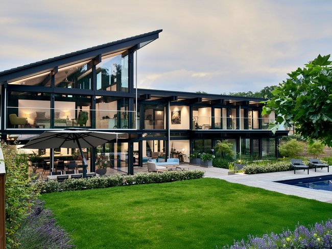 In the English county of Surrey, a fascinating HUF house of timber and glass has come to life – a residence that has been honoured with the prestigious “International Property Award” for its sustainable architecture, distinctive design, and outstanding quality. This internationally recognised accolade is presented annually in London and ranks among the most respected distinctions in the global property industry. At first glance, it is unmistakably a HUF house. Yet a closer look reveals the many architectural highlights that make this dream home truly exceptional.