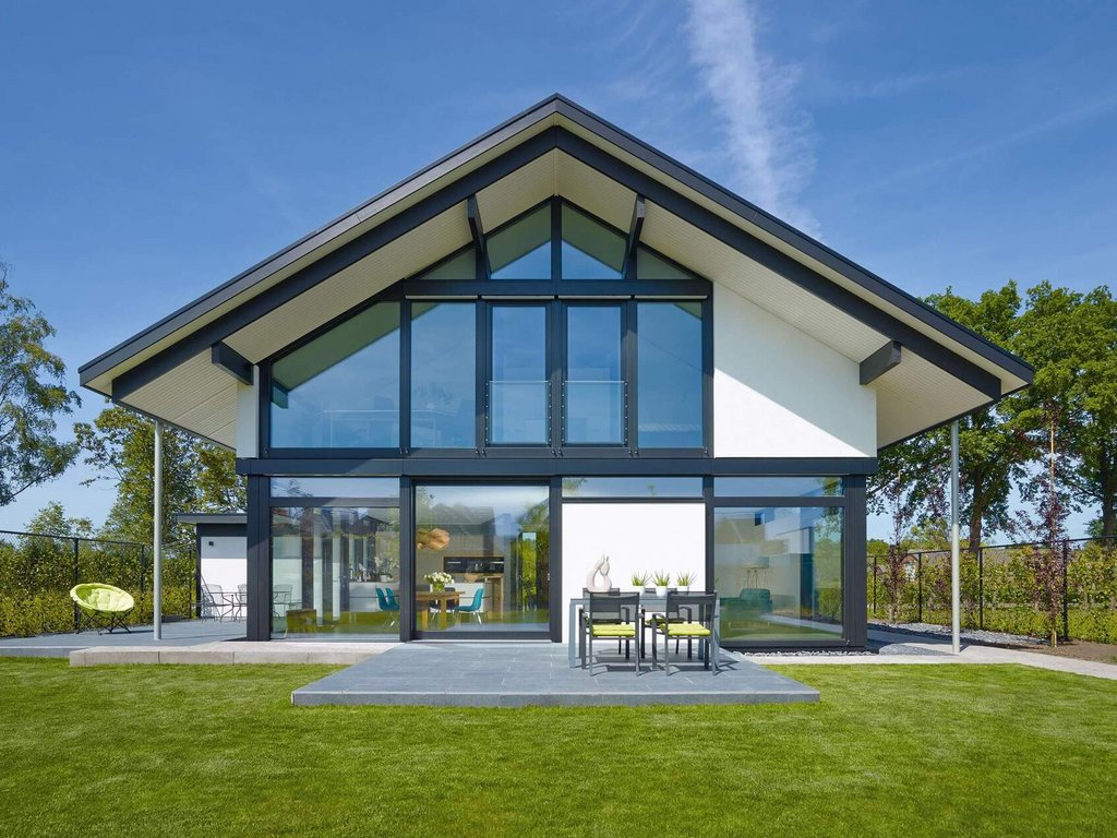 Based on Bauhaus style, the HUF house MODUM 8:10 fascinates with its linear timber-frame architecture in the beautiful province of Nordbrabant. The dark wooden frame traces out the clean lines of the facade, with alternating glass surfaces and wall panels.