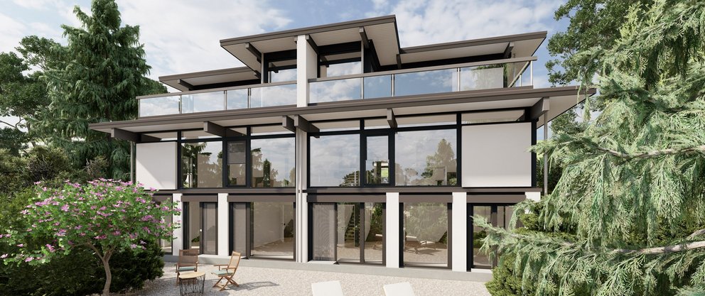 The desire for a modern flat-roofed house, clean lines and spacious terraces with a view of the lake quickly became the common denominator. The two also immediately agreed on sustainability: the new building should be as ecological as possible, constructed from wood and fully compliant with today's energy standards.