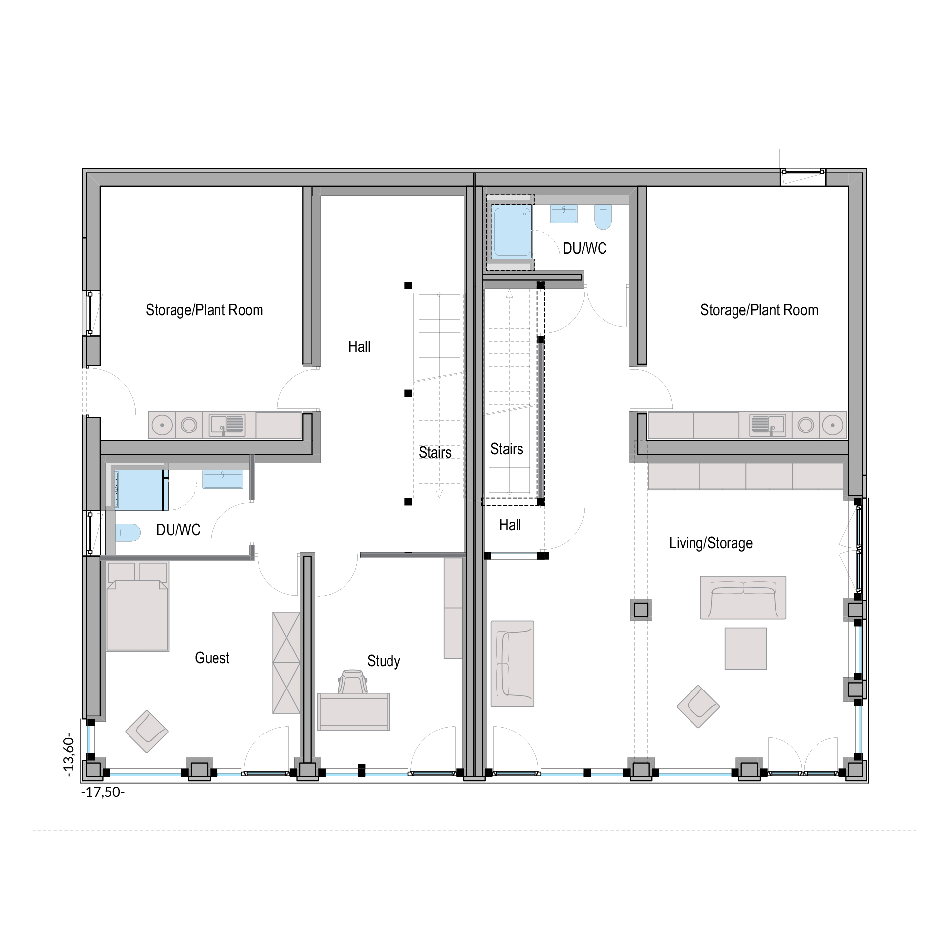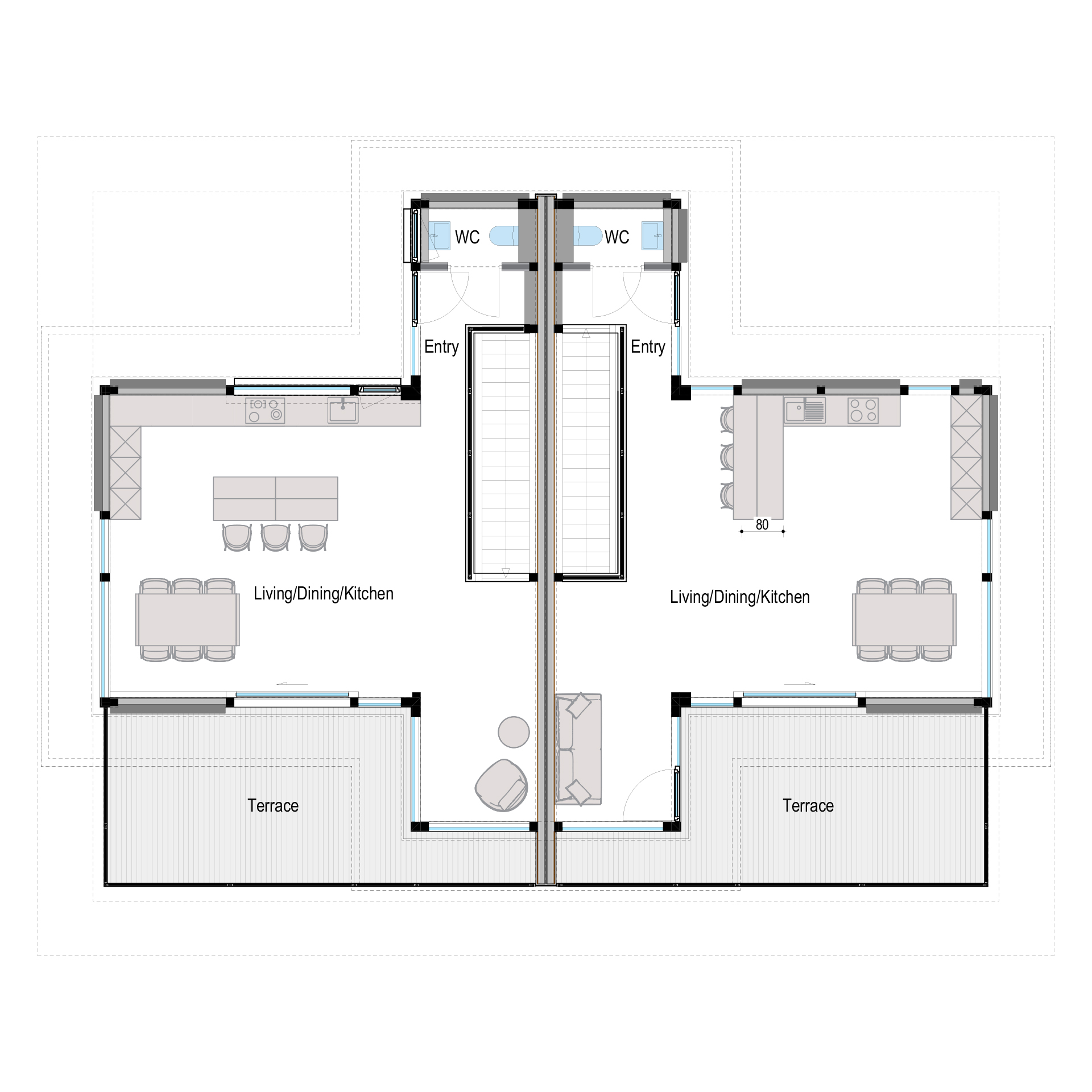 Although it is a semi-detached house, each half was planned individually according to the needs of the respective client. The result is two independent residential units that harmonise architecturally, but each bear their own personal signature. The clear division of tasks and the exceptionally good understanding between the siblings made the planning phase remarkably uncomplicated — it was clear early on who would live in which part of the house.