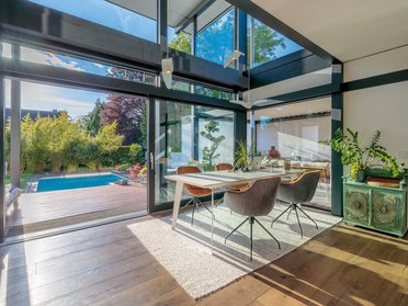 De woning wordt in al haar facetten benut – binnen én buiten. Privacy en openheid zijn perfect in balans. Maar het is niet alleen het architectonische concept dat overtuigt – ook de kwaliteit van uitvoering bevestigt de bewuste keuze voor een HUF HAUS. Het echtpaar besluit: